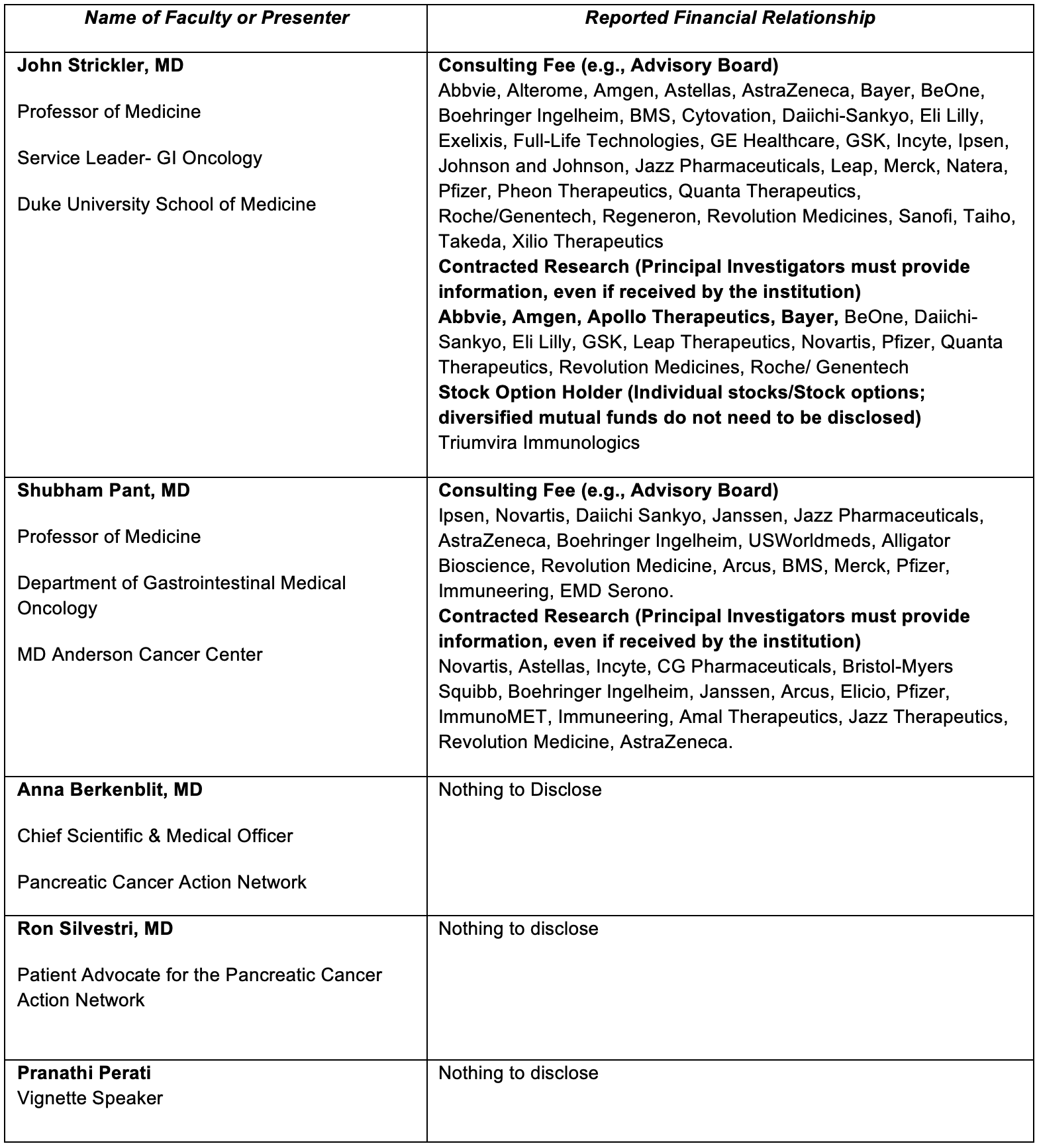 Disclosures of Relevant Financial Relationships