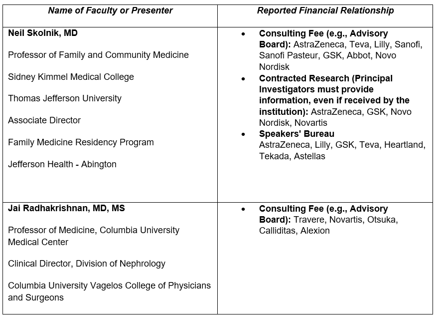 The educational design of this activity addresses the needs of primary care providers, nephrologists, renal pathologists, transplant nephrologists, nephrology nurses, nephrology nurse practitioners and physician associates, specialty pharmacists, and managed care clinicians.